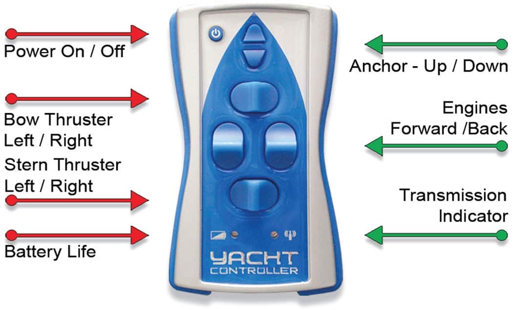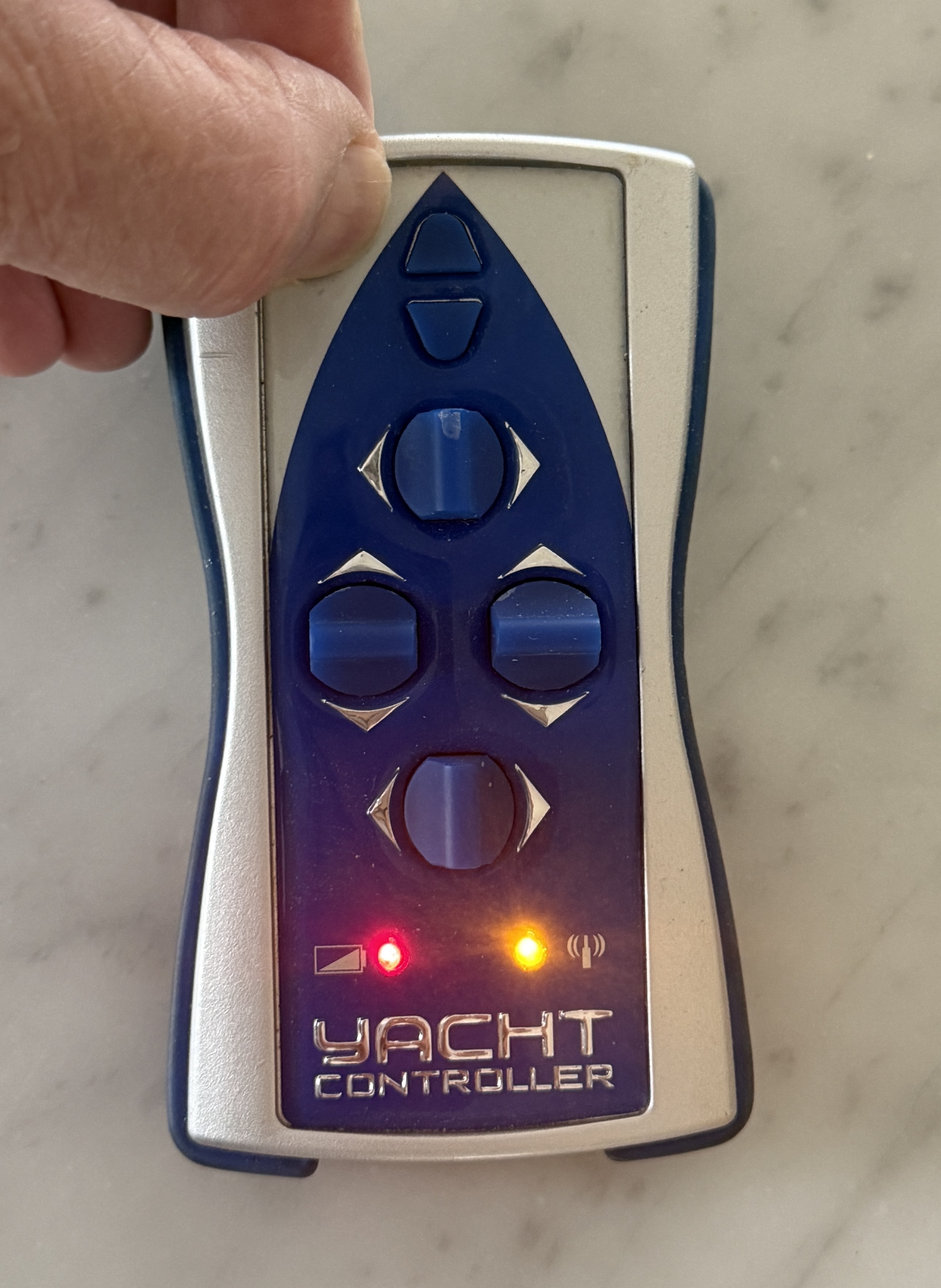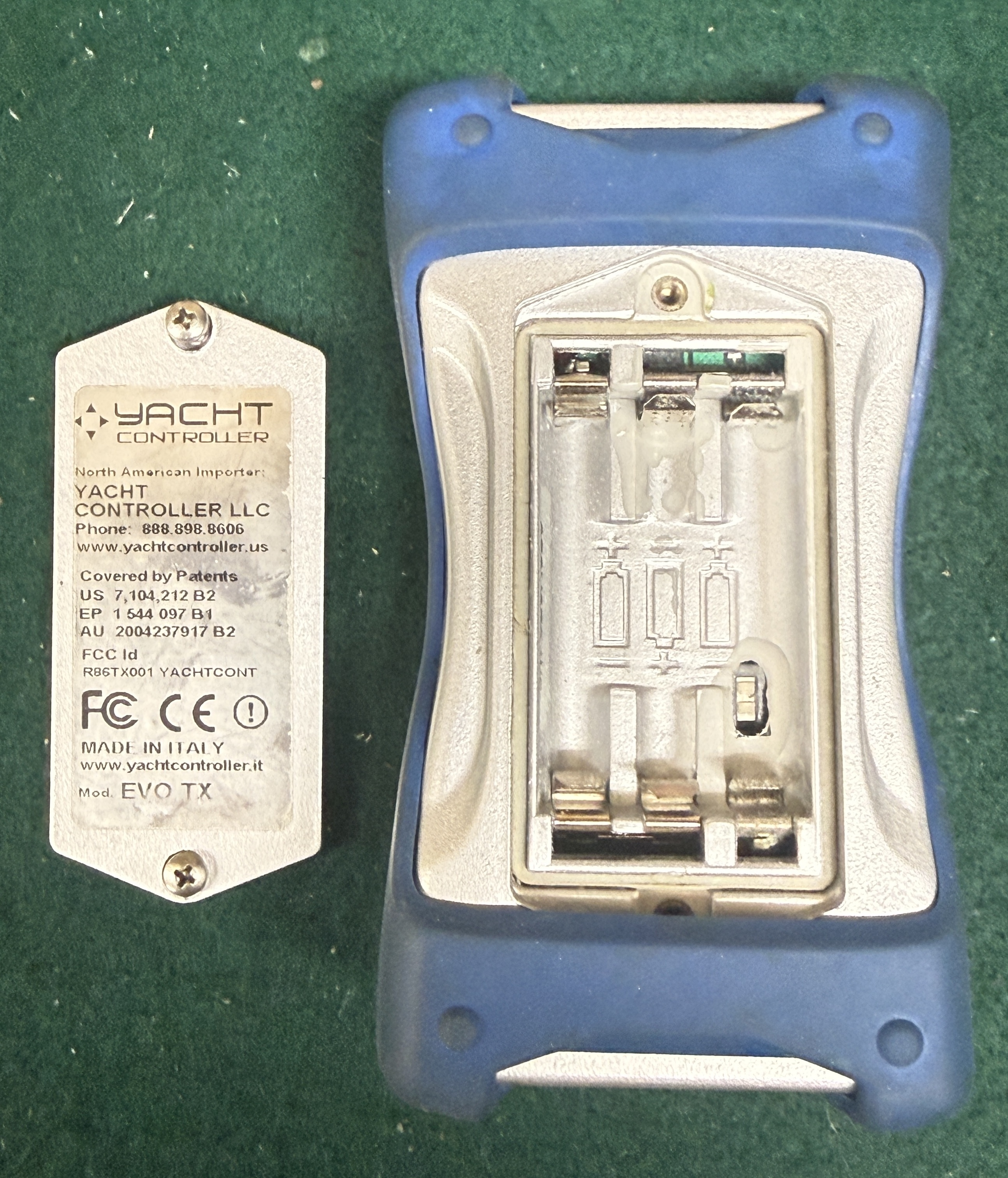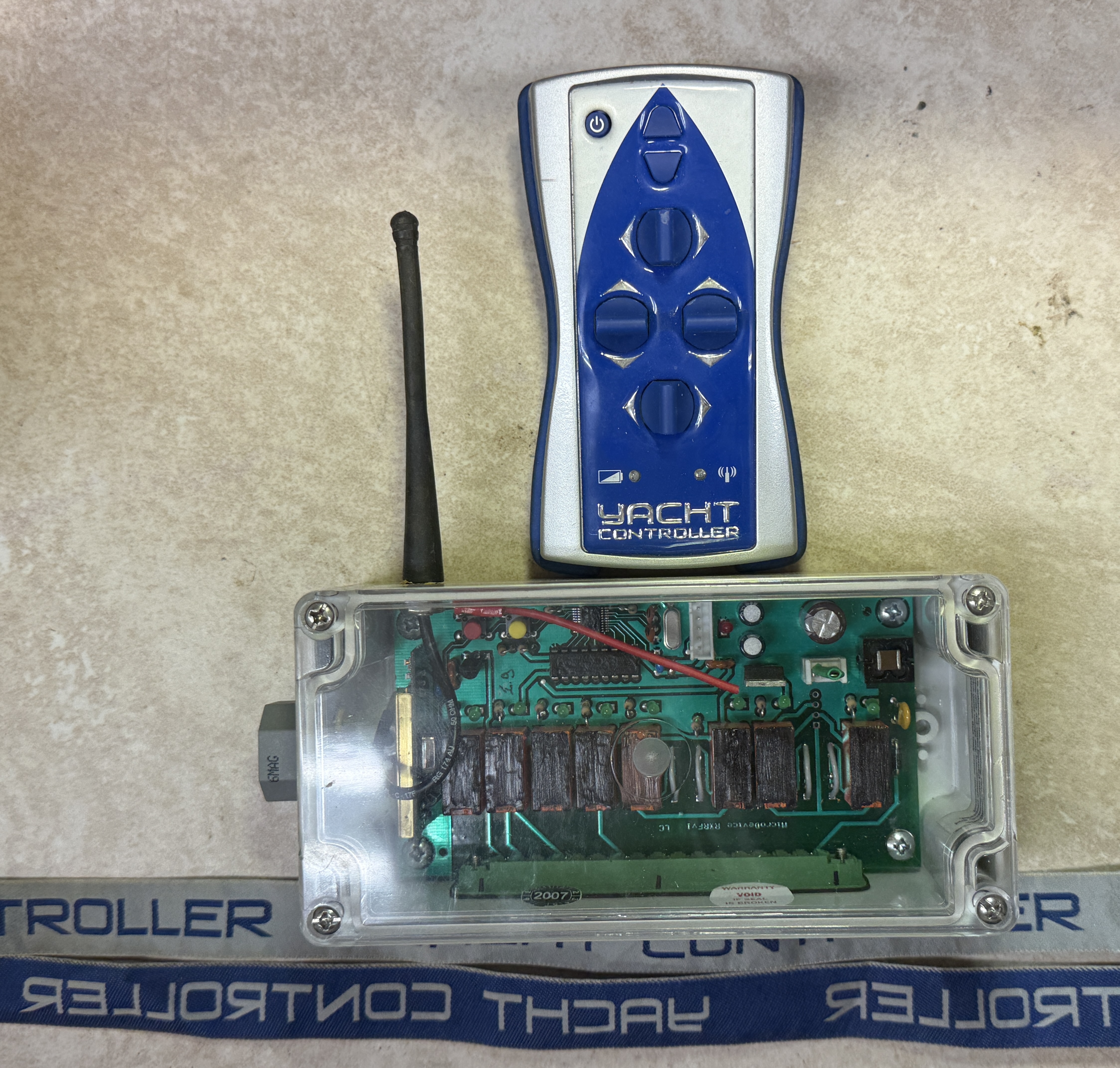 I have a 2007 Yacht controller system I have removed. It has been sent to the Factory for repair but they refused. The stated that the Blue Tooth portion of the Main box no longer works. However, the Remote is fully functional. You will need a Terminal block plug to connect to the Main box for testing (Digikey sells them = TERM BLOCK PLUG 16POS STR 5.08MM)if you try to repair the blue tooth. I am selling the Working remote! I am throwing in the Main box. The remote can be reprogrammed to an existing working main box according to Yacht Controller. I have paperwork that shows which pin does what on the Main Box. This unit can control twin engines or single, Thrusters, bow and stern as well as windlass Up and Down. The remote is an EVO tx.