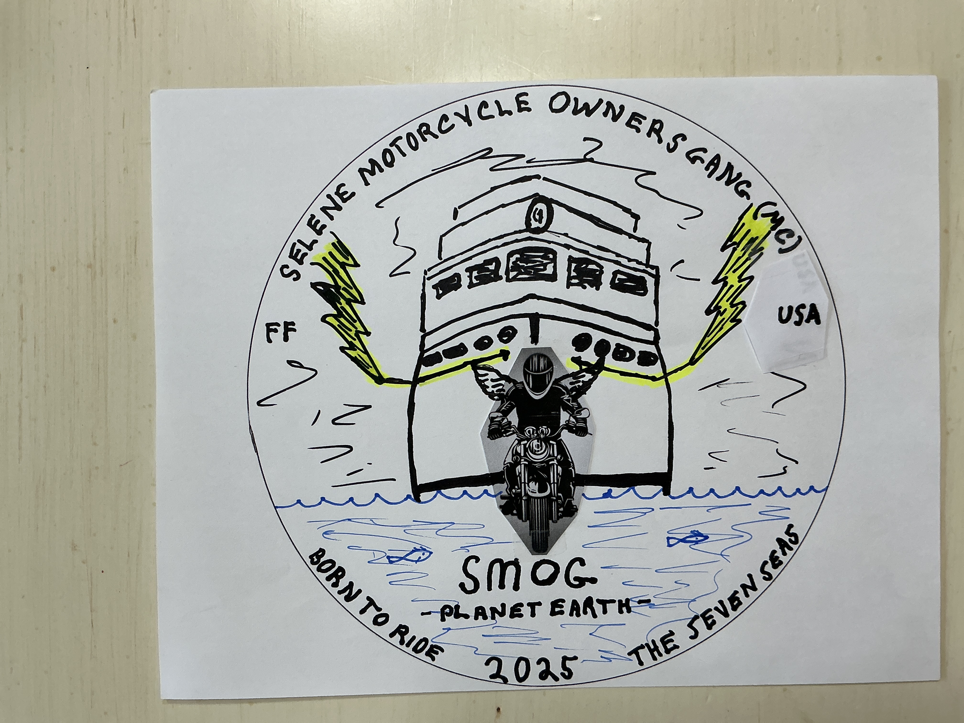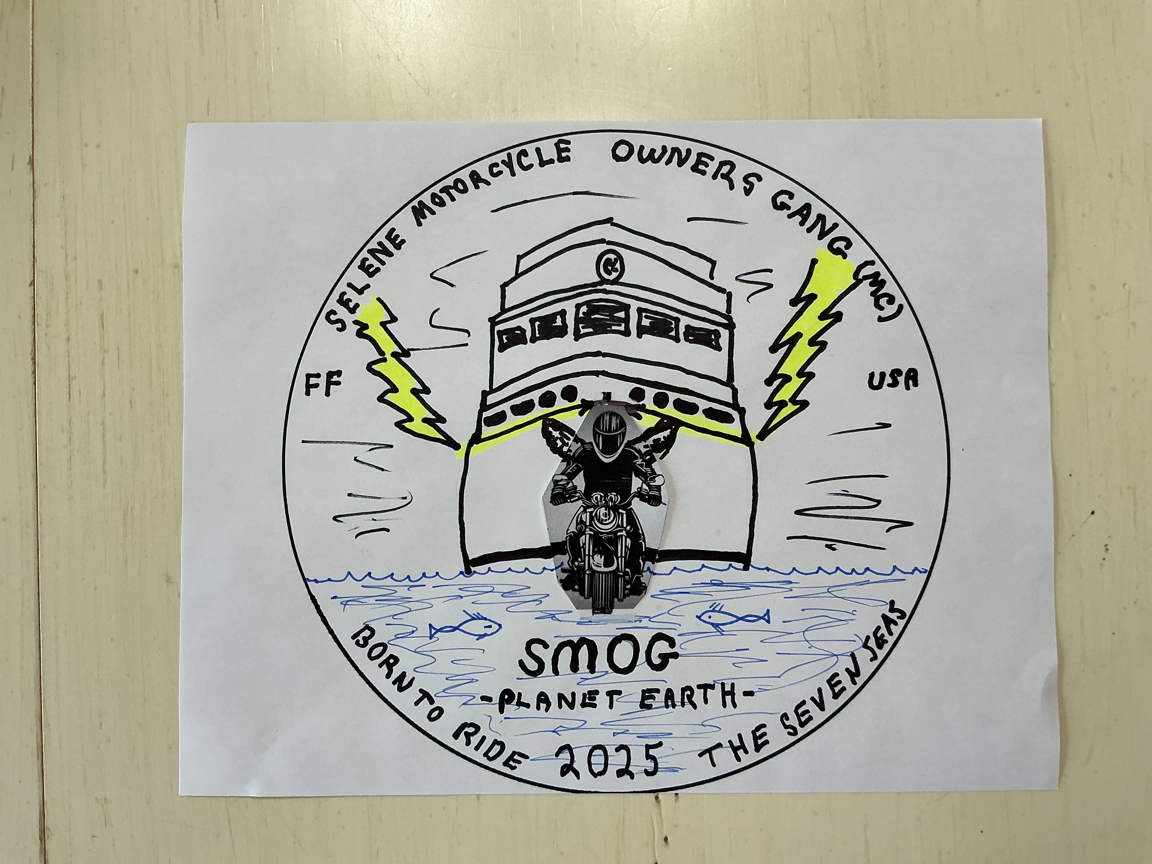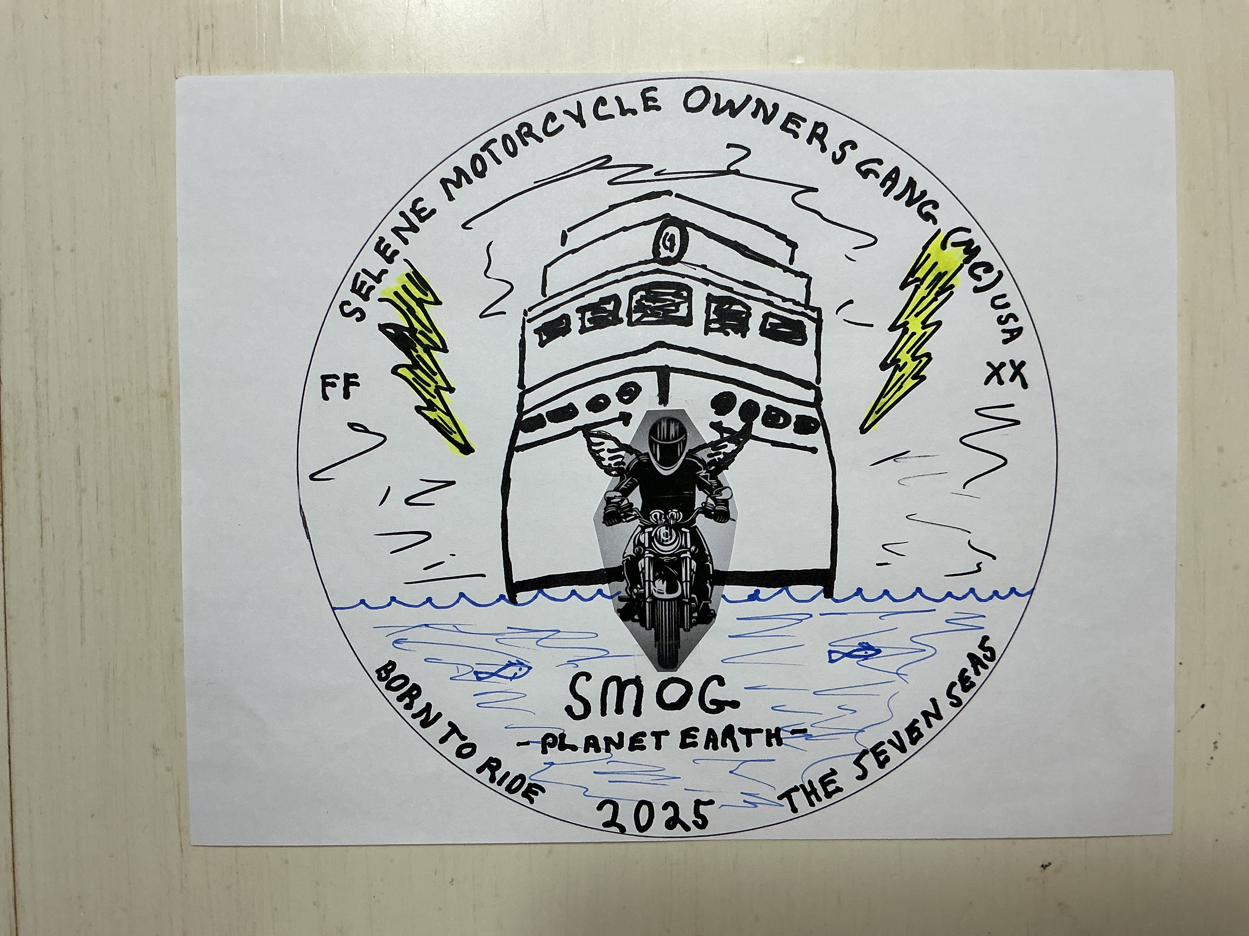 After comments, the latest iteration of the SMOG logo is attached. Better biker, waterline lowered, lightning bolts, wings on biker. Comments?