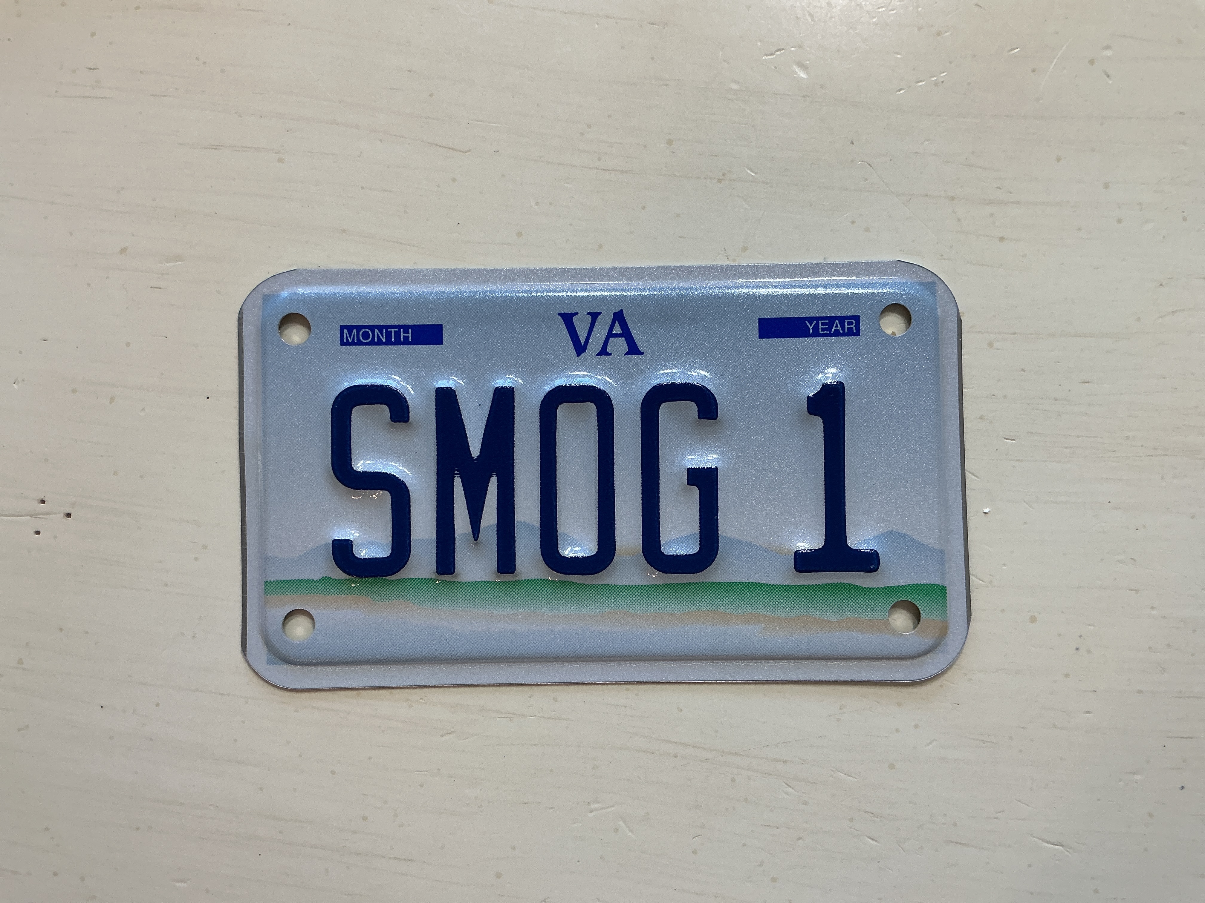 The Virginia DMV is on board with our Gang. See attached photo - I got SMOG 1 and 2 for my Triumphs, so if any brothers visit by boat or car I have a ride to share and we can cruise. Interestingly, the simple “SMOG” tag was not available as already in use by someone.