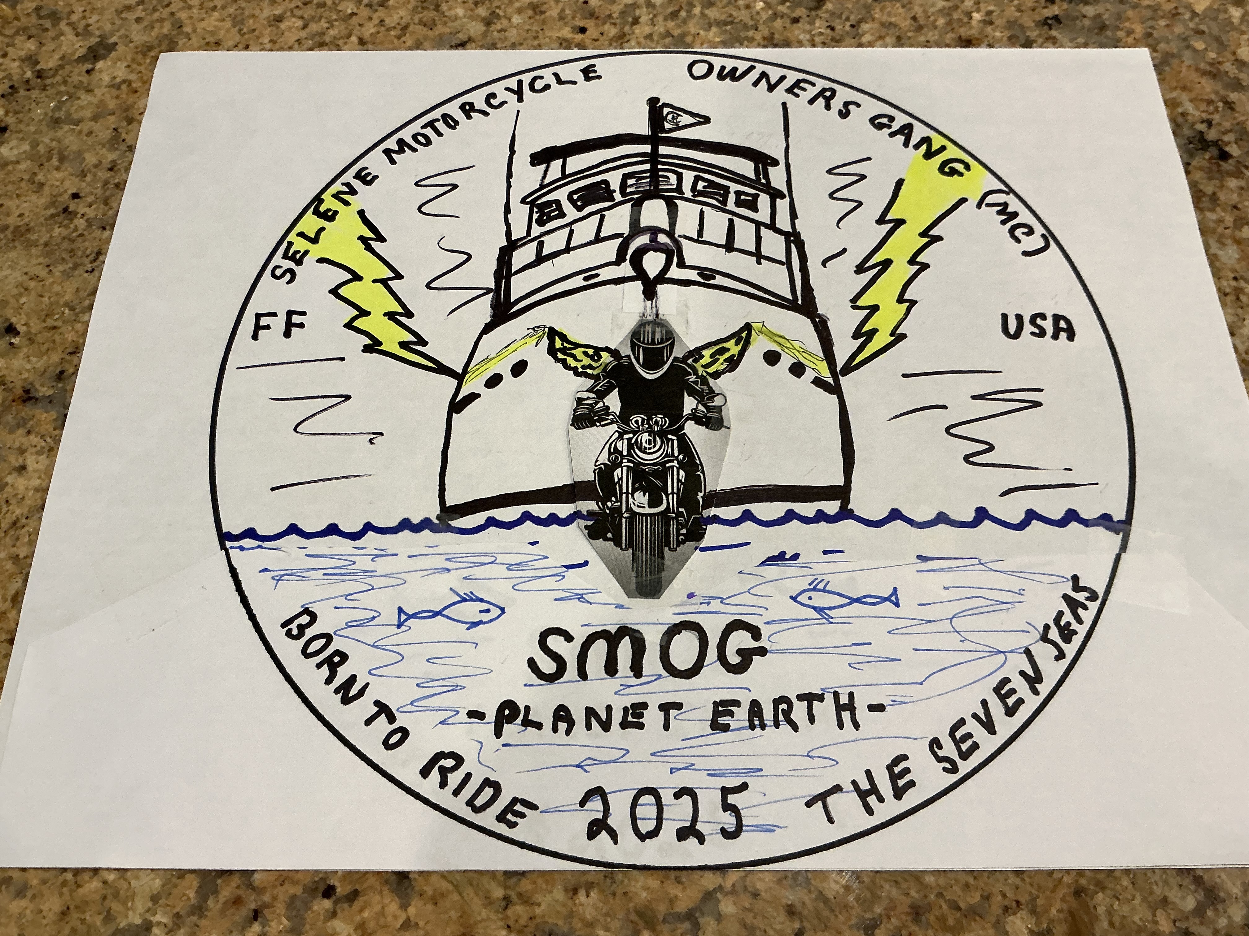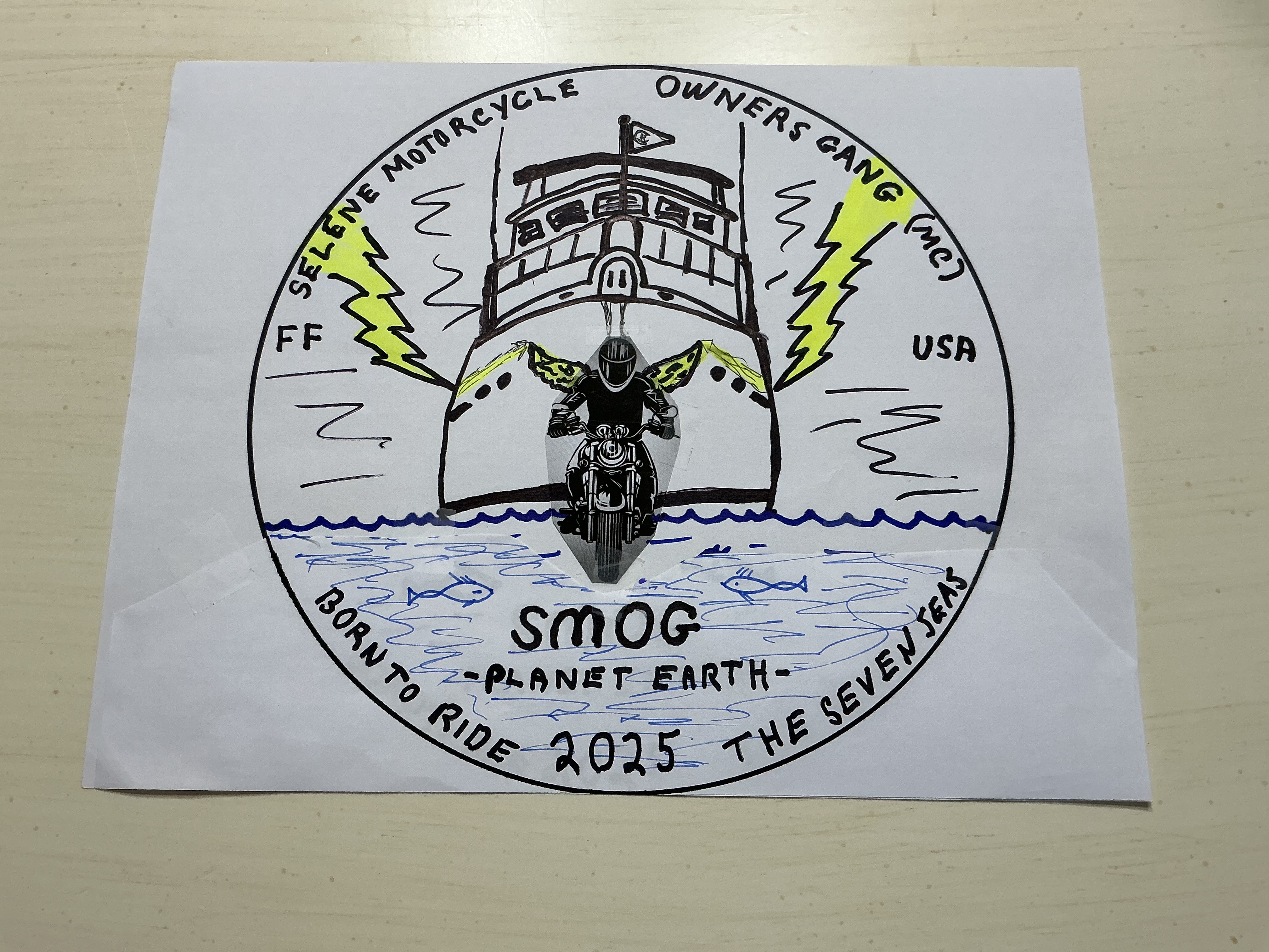 After receiving a lot of input, I attach my final draft of the SMOG logo I am submitting to Howard for his artistic contributions. Important touches include much meaning. The logo is designed with close attention to the Rules of MC Patches.